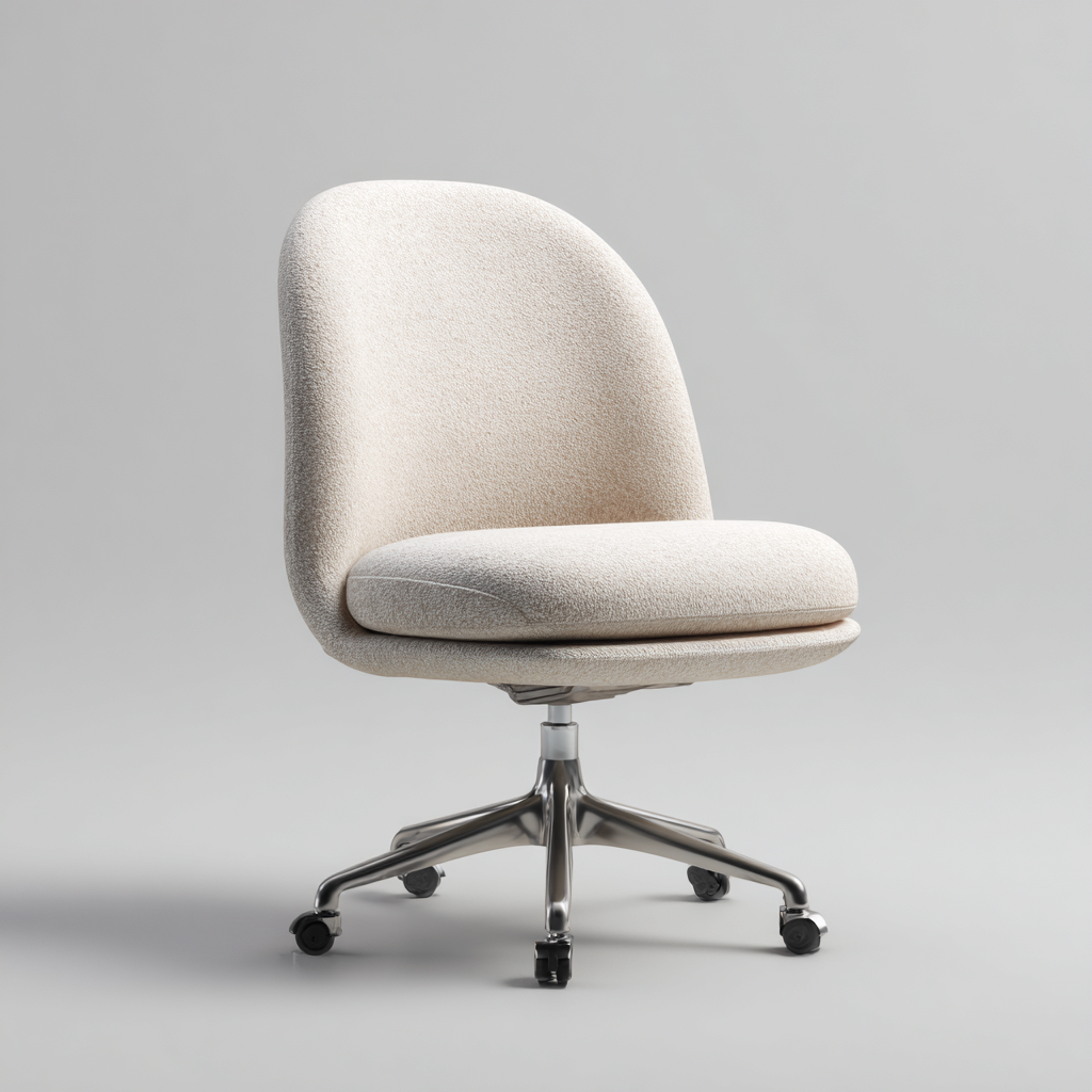 Sedia da ufficio tessuto bouclé e metallo 60x60x85 cm - Beige - Design moderno girevole senza braccioli