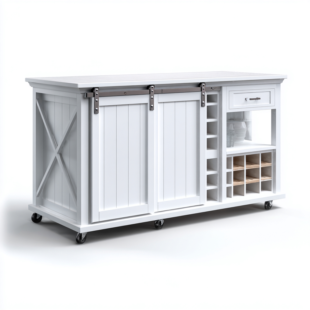 Questa isola da cucina offre un'ampia superficie di lavoro abbinata a una struttura capiente, ideale per migliorare l'organizzazione e la funzionalità dello spazio cucina. Il design country con dettagli lineari si inserisce con naturalezza in ambienti domestici moderni e tradizionali.