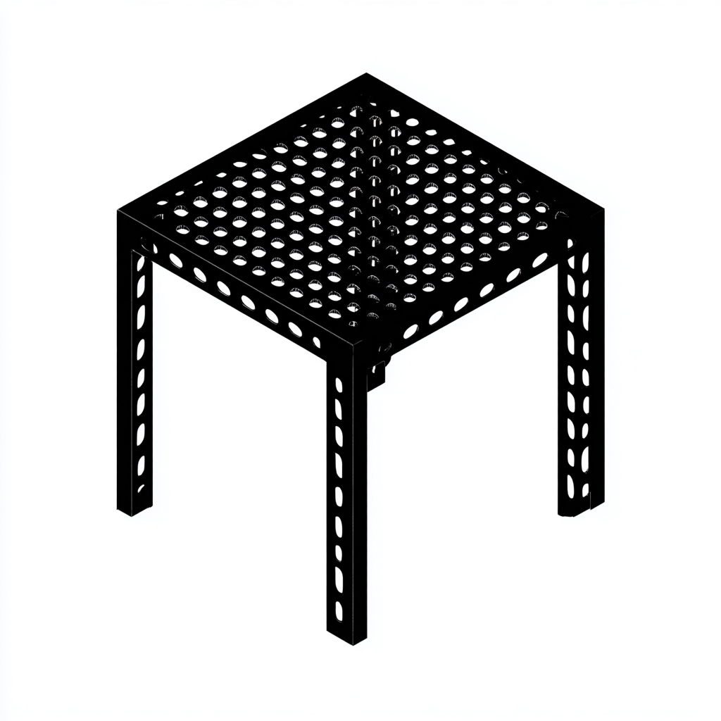 Il formato quadrato offre una superficie pratica per appoggiare bevande piante o piccoli accessori. Le quattro gambe assicurano stabilità mentre la struttura forata contribuisce a ridurre l'accumulo di umidità.
