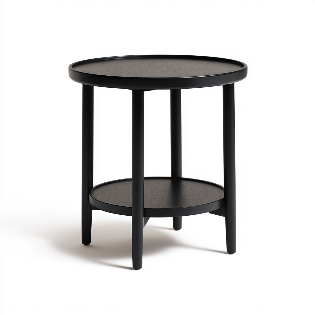 Il piano superiore rotondo offre una superficie stabile per appoggiare bevande o piccoli oggetti. Il vassoio inferiore integrato consente di organizzare accessori aggiuntivi, migliorando la funzionalità senza aumentare l'ingombro.