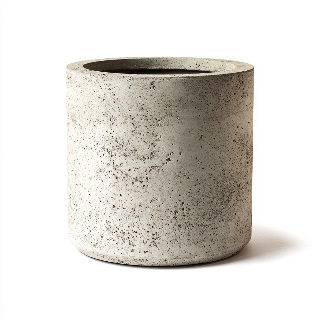 Questo vaso da fiori cilindrico in cemento con superficie a pori naturali si distingue per uno stile minimalista e moderno, ideale per ambienti interni ed esterni.