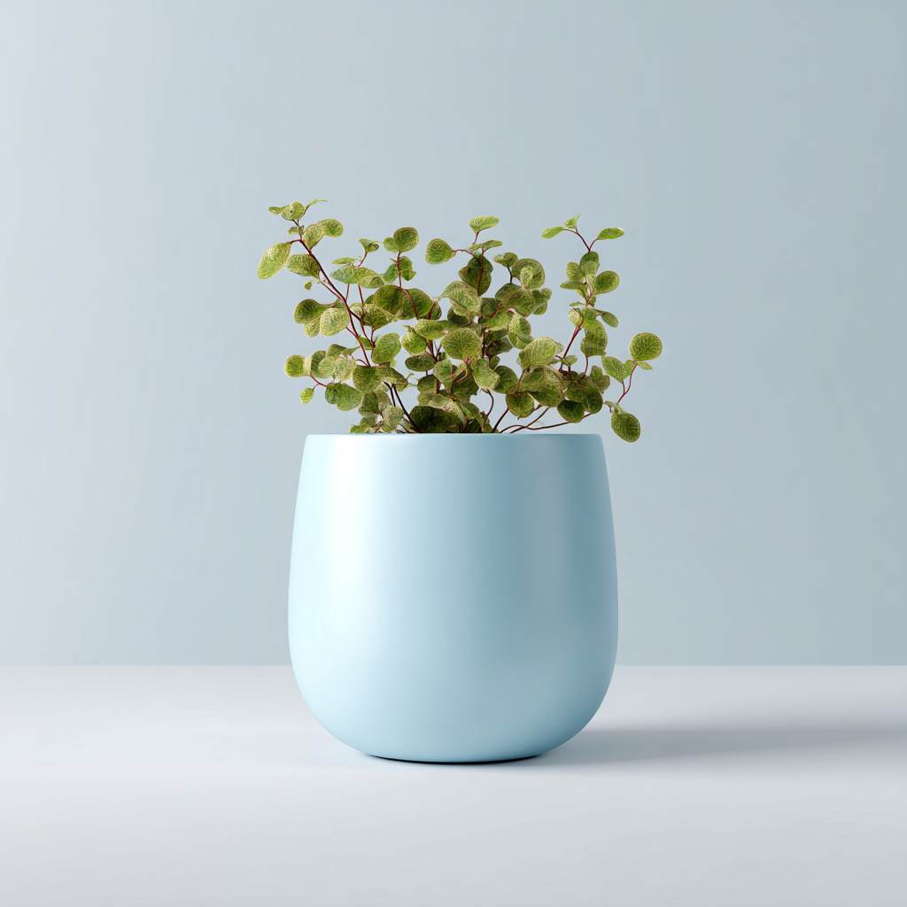 Realizzato in plastica leggera e resistente, il vaso offre una superficie liscia e un colore azzurro tenue che si integra facilmente con diversi stili di arredamento.